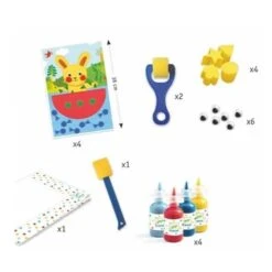 Djeco Peinture à L’éponge – Les Aventures Des Doudous – Coffret Loisir Créatif Enfant 3 à 6 Ans
