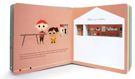 Un livre cartonnĂ© très ingĂ©nieux pour se familiariser avec l’Ă©cole maternelle.