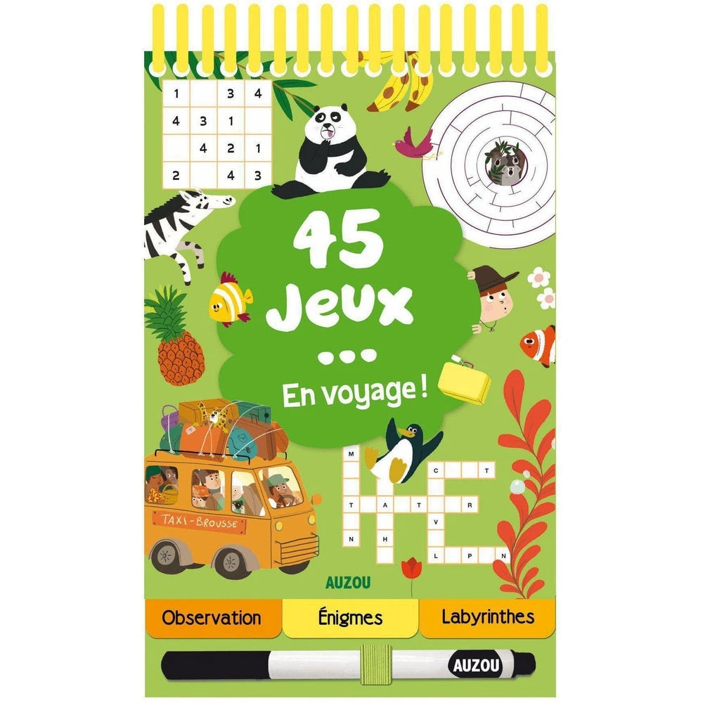 Une collection de bloc-notes originale et astucieuse avec des pages plastifiées, un feutre effaçable et des solutions en regard de chaque jeu.