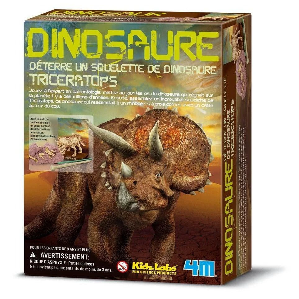 Déterre un squelette de dinosaure Triceratops. Tous les outils sont fournis pour révéler au grand jour les os du dinosaure qui régnait sur la planète il y a des millions d’années.