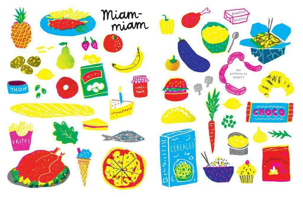 Qui a dit que passer à table rimait avec ennui ? Tout au long de ce cahier aux illustrations pop et colorées, l’imagination est aussi stimulée que les papilles. Munis de crayons et feutres (ou même de spaghettis !) les enfants créent tour à tour plats, gâteaux, boîtes de céréales, font leur menu idéal, découvrent les cuisines du monde… Avec l’aide d’un adulte, ils peuvent jouer, pour de vrai, aux cuisiniers, pâtissiers ou boulangers en chef.