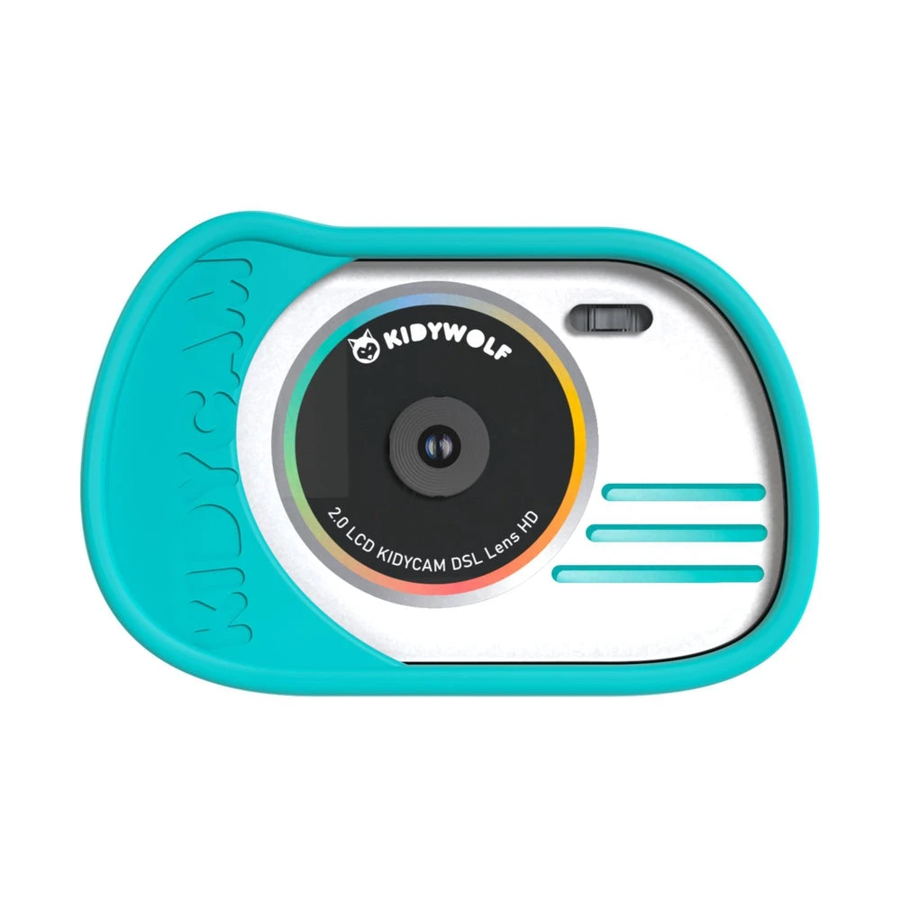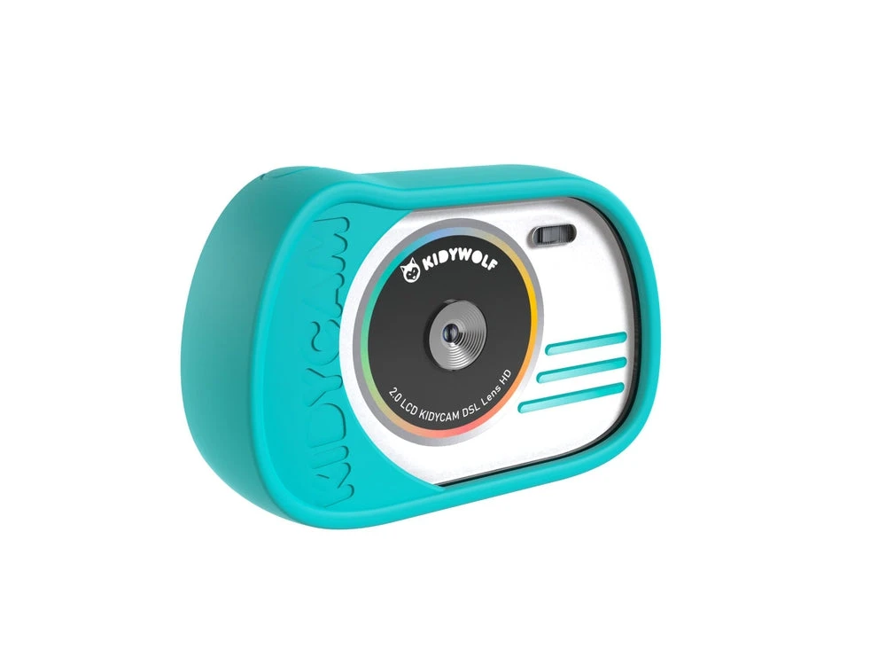 DĂ©couvrez l’appareil photo et camĂ©ra d’action Kidycam cyan de la marque Kidywolf. C’est le compagnon idĂ©al des enfants de 3 Ă 12 ans !Â
