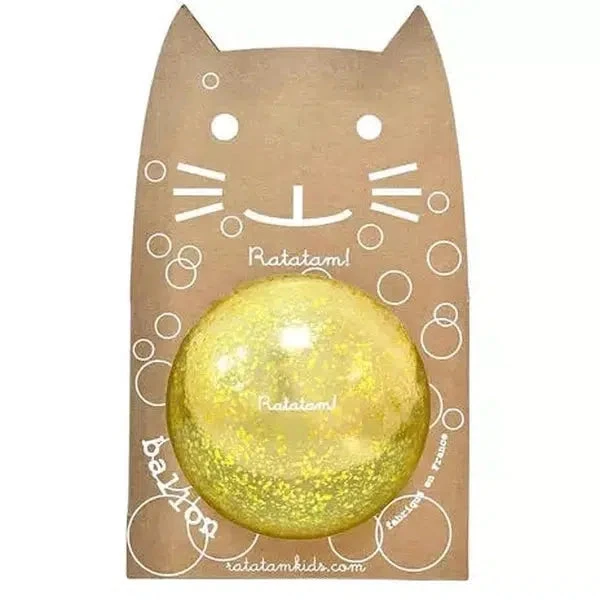 Ce ballon bulle transparent à paillettes jaunes de 15cm de diamètre est un incontournable pour nos loupiots !