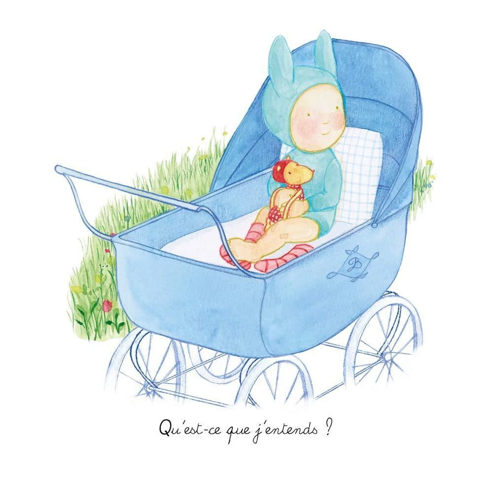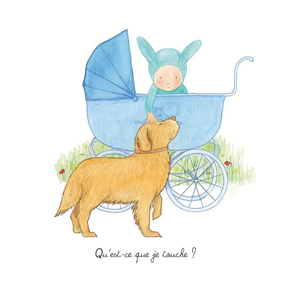 Bébé Balthazar se promène au jardin : que de choses à découvrir ! Il sent le vent, écoute le chant de la mésange, voit un visage ami, caresse un chien touffu…
