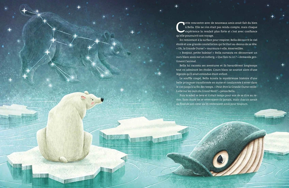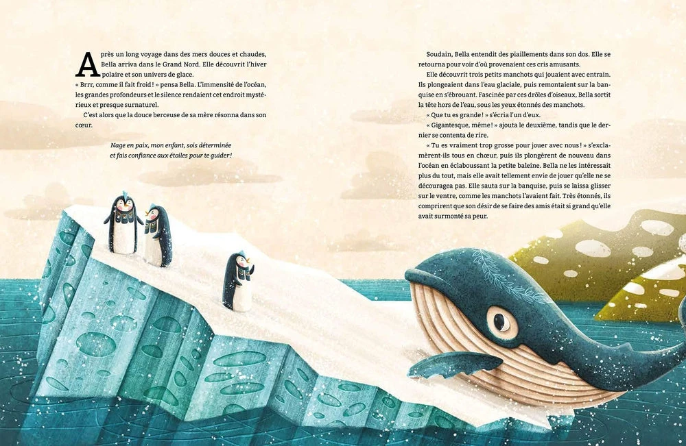 L’histoire émouvante d’une petite baleine prénommée Bella qui se retrouve séparée de ses parents et traverse le monde pour retrouver son grand frère. Triste et solitaire, elle parcourt les océans, de l’équateur jusqu’au Grand Nord. En chemin, elle rencontre toutes sortes de créatures et se fait plein d’amis. Chaque nouvelle rencontre la réconforte, la rend plus forte et lui donne le courage de continuer son voyage. Parvenue à l’autre bout du monde, la petite Bella retrouvera-t-elle son frère?