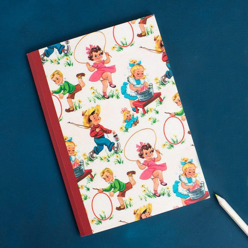 Ecrire est un plaisir avec ce joli carnet A5 aux dessins vintage d’enfants! environ 60 pages lignĂ©es.