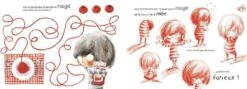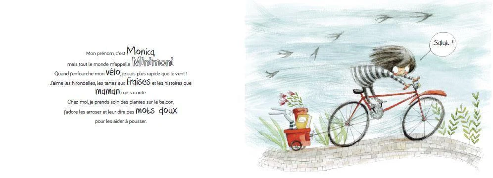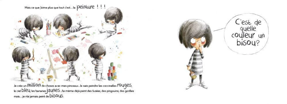Chaque page aborde une couleur avec humour et dynamisme. Une histoire éclaboussée de peinture où le lecteur peut exprimer, à l’image de Minimoni, ce qu’il aime et ce qu’il n’aime pas : le rose, par exemple, est la couleur des gâteaux préférés de la fillette, mais c’est aussi la couleur des robes de princesse, et Minimoni déteste se déguiser en princesse !