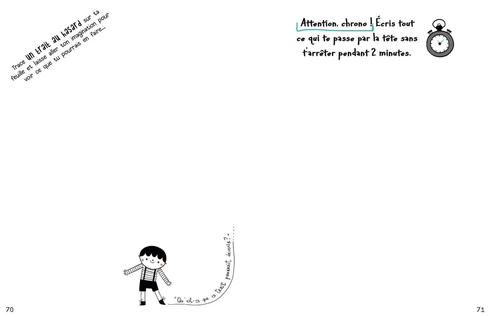 Un cahier pour dessiner, laisser aller son imagination, rêvasser, réfléchir, créer, relever des défis, se défouler et se faire du bien !