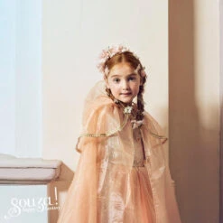 On craque complètement pour cette robe légère en tulle et son bustier paillettes, spécialement conçue pour les enfants de 3-4 ans, à la douce couleur rose saumon. Parfaite pour les petites princesses, assortie à la jolie cape Valorie de la même couleur et aux pinces à cheveux Tilly.