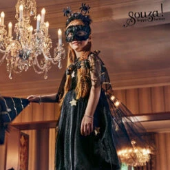On craque complètement pour cette robe de sorcière horriblement belle, avec son jupon léger et ses étoiles dorées, spécialement conçue pour les enfants de 5 à 7 ans. Parfaite pour les petits monstres et pour des occasions comme Halloween ! A assortir avec le chapeau Evilian et la baguette magique noire Cara.