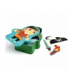 1 boite mĂ©tallique et 27 pièces en bois aimantĂ©es (chaussures, chapeaux, accessoires, vĂŞtements, etc…)