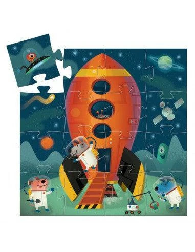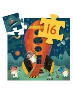 Un magnifique puzzle de 16 pièces dans une jolie boîte décorative en forme de fusée !