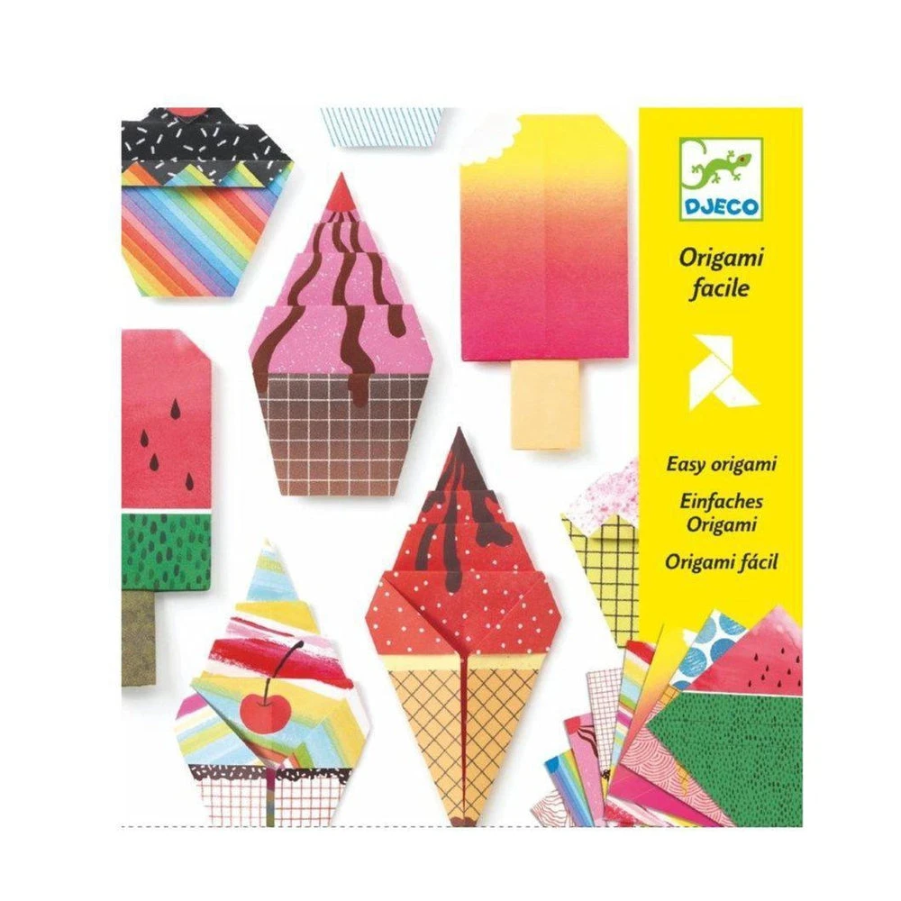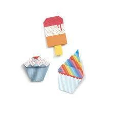 Ce joli kit Origami Délices comprend 12 grandes feuilles imprimées recto verso, 12 petites feuilles imprimées recto verso et un livret explicatif pas à pas en couleurs…. pour réaliser d’appétissants desserts: cornets de glace, muffins, cupcakes, sundaes…