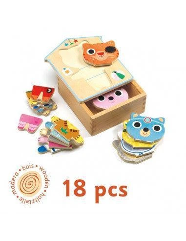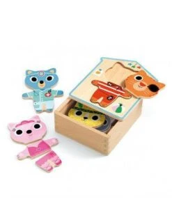 DĂ©couvrez le puzzle en bois Dressup Mix de la marque Djeco, pour les enfants dès 2 ans.Â