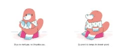 DOU, le bĂ©bĂ© ornithorynque, dĂ©couvre un objet inconnu dans la salle de bains. Il l’observe, essaie de voir si c’est un chapeau… Non… Un tambour ? Non plus… Toujours curieux, il appelle Maman Ă la rescousse. Fort de ses explications, il s’assoit dessus et, presque sans s’en apercevoir, il fait pipi dedans alors que Maman est encore en train de dire que ça lui prendra du temps, de devenir grand… ! Oh, la belle surprise ! Bravo, DOU !!