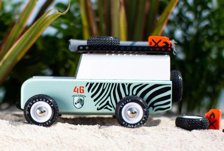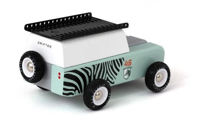 DĂ©couvrez la voiture en bois Drifter Zebra de la marque Candylab. Â