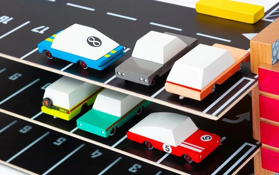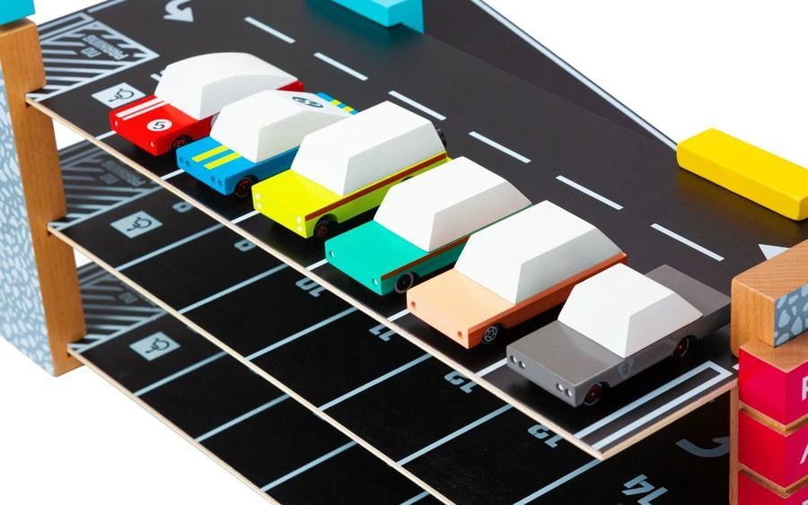Découvrez le magnifique garage en bois magnétique de la marque Candylab.Â