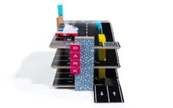 Ce garage en bois de hêtre massif entièrement fonctionnel comprend 21 places de stationnement qui retiennent magnétiquement vos voitures. Les véhicules sont parfaitement alignées et resteront à leur place même si le bâtiment est déplacé !Â