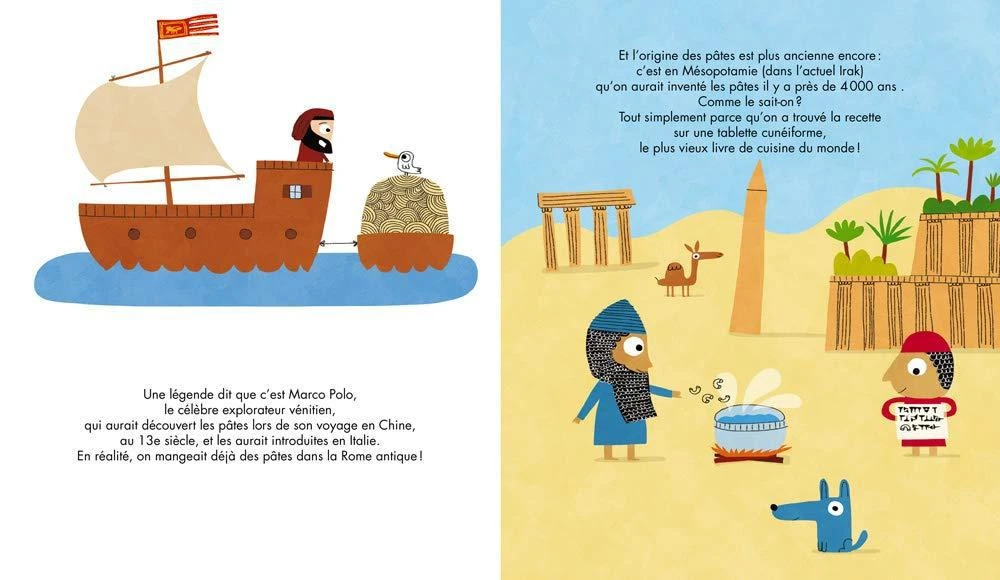 Retrouvez dans ce super album des informations essentielles sur les pâtes, leurs origines il y a près de 4 000 ans en Mésopotamie, leurs modes de fabrication ou de préparation ainsi que leurs qualités nutritionnelles.