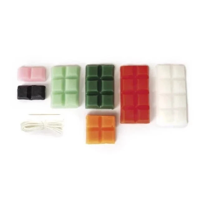 Le coffret contient 7 couleurs de cire à modeler, une mèche à bougie, un cure-dent et une notice.
