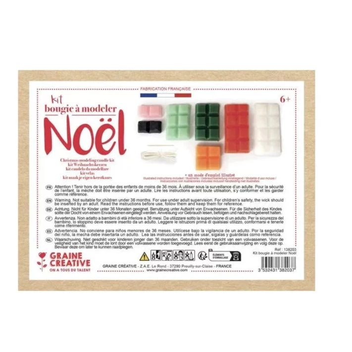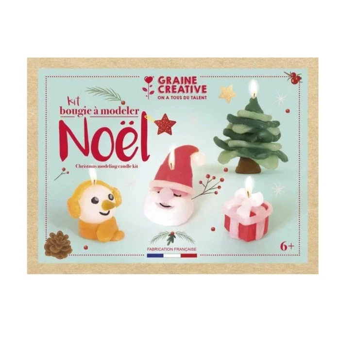 Découvrez le Kit bougies à modeler Noël de Graine créative, un coffret créatif à partir de 6 ans pour réaliser de magnifiques bougies sur le thème de Noël. Une activité manuelle fabriquée en France.