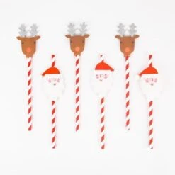 (pailles de Noël, gobelets Père Noël en carton ou autre produit équivalent selon disponibilité fournisseur)