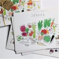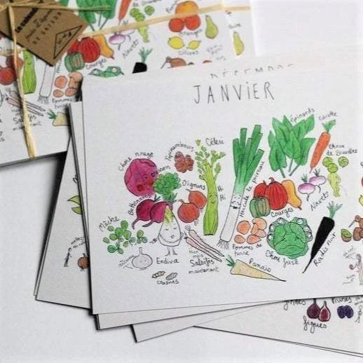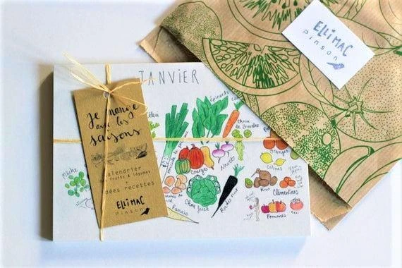(Un set de 4 ustensiles en bois et silicone pour enfant, des stylos de cuisine pour décorer vos gâteaux ou des emporte-pièces thème Noël en métal selon disponibilité fournisseur) - De belles illustrations des fruits et légumes de saison pour prendre de bonnes habitudes !
