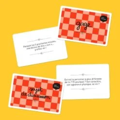 (Un set de moules cœur en silicone et les décors à parsemer ou autres moules et décorations selon disponibilité fournisseur + un vrai couteau de cuisine pour enfant) - Un jeu éducatif: Jeu de cartes A table ! – kit de discussion en famille des éditions Minus ou gros cahier d’activités A table ! selon disponibilité fournisseur