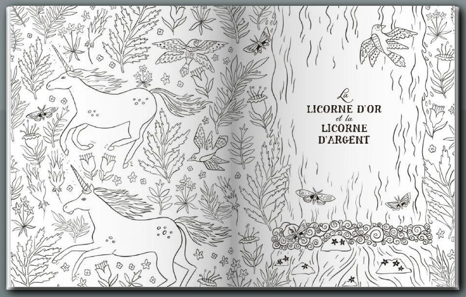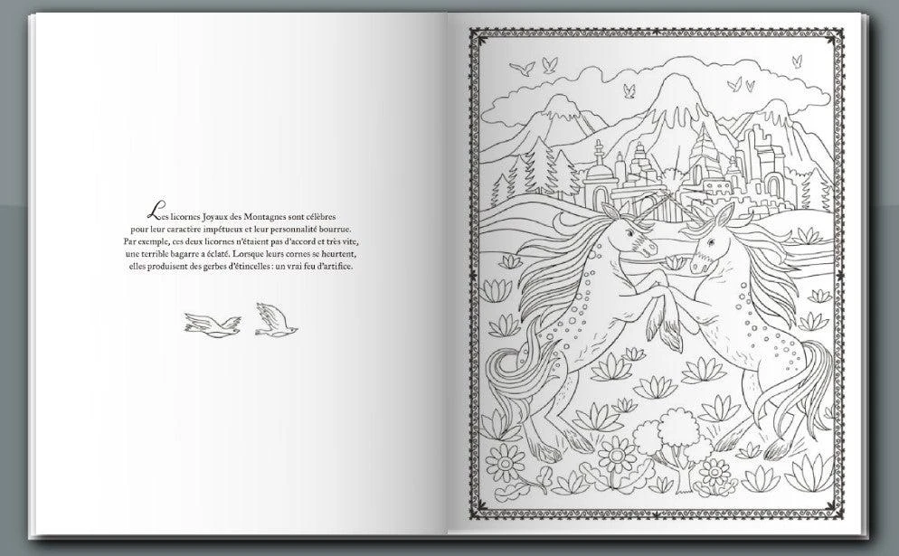 40 splendides illustrations Ă colorier pour prolonger le plaisir du Grand livre des licornes.