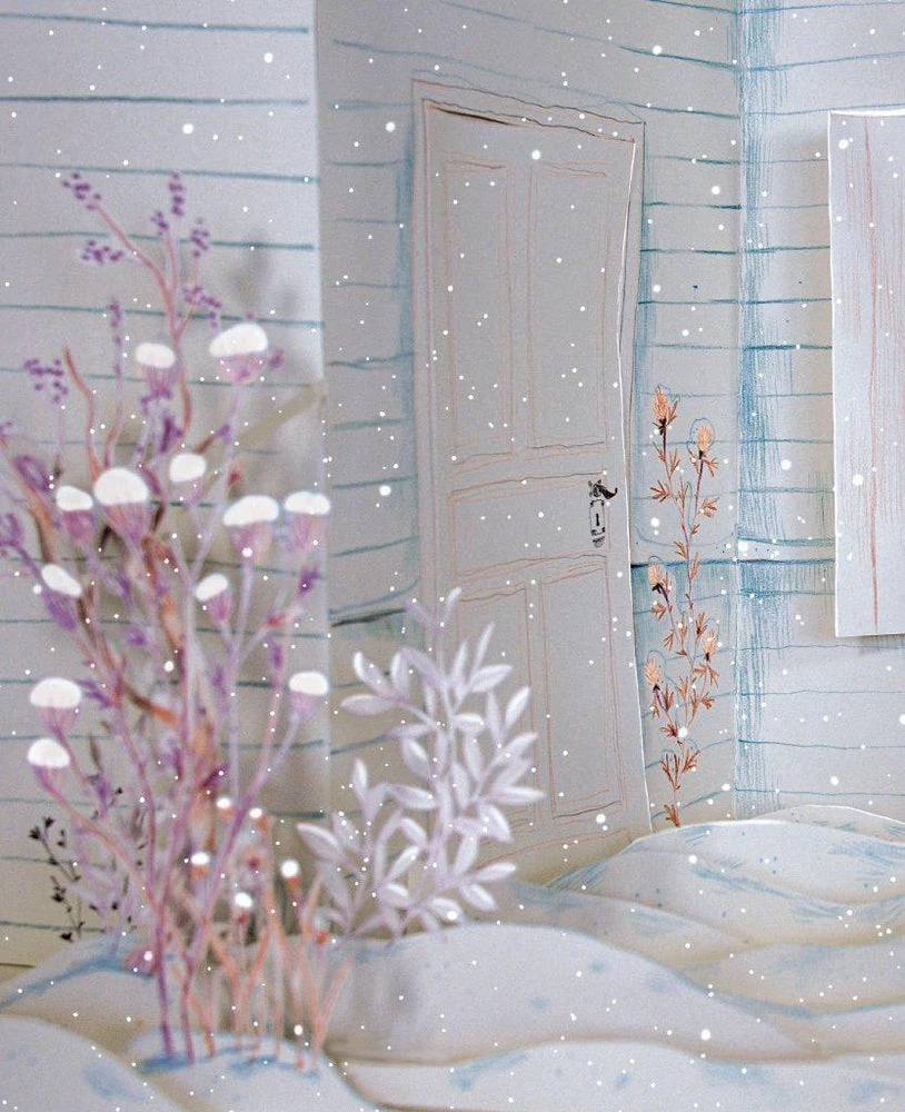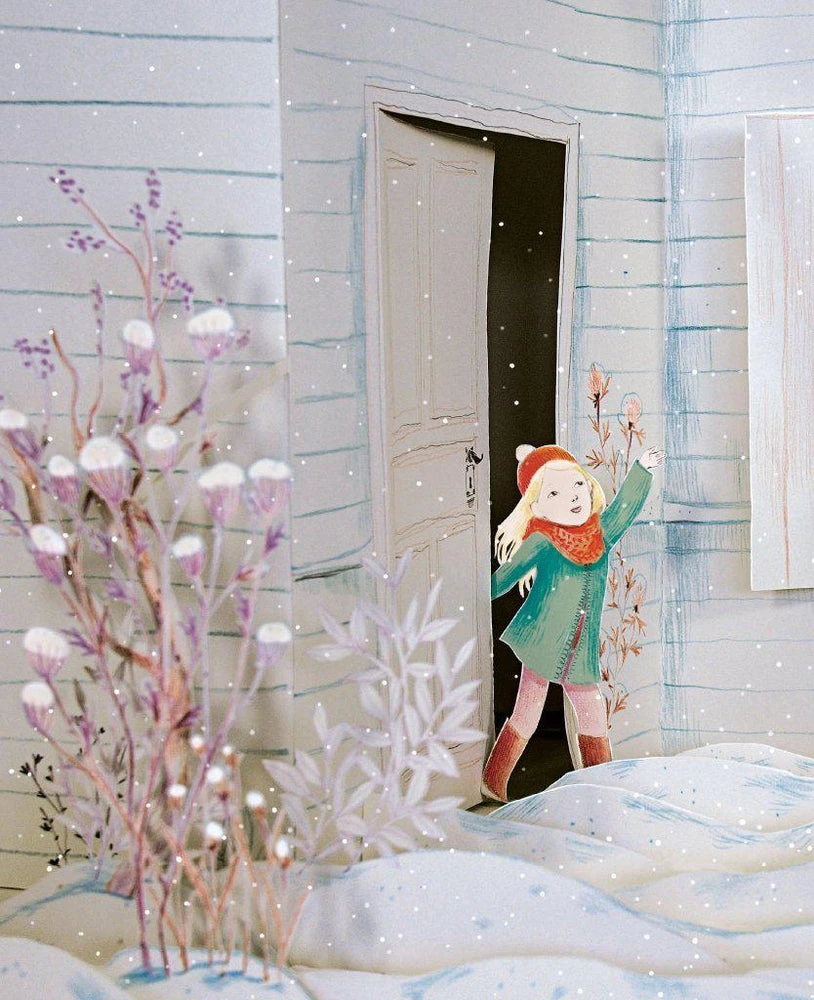 LĂ , quand le fauteuil sera immobilisĂ© par la neige, les deux sĹ“urs se rĂ©chaufferont l’une l’autre, tout en observant les animaux qui s’approchent, le froid qui se densifie, les bruits qui prennent de l’ampleur. Mais le lapin de neige transformĂ©, petit Ă petit en une immense et douillette monture viendra les sauver.