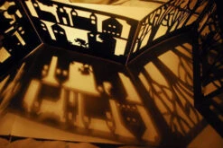 Tout en lisant ce conte intemporel, on pourra s’amuser à craindre le Loup, à sourire des mimiques de l’adorable Chaperon et à visiter ces décors miniatures, en projetant des ombres chinoises au mur. Un ouvrage fait de détails minutieux en papier et de découpes semblables à ceux d’une broderie.