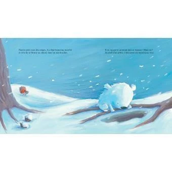 L’histoire d’un petit ours blanc qui se perd dans la neige et cherche un abri pour la nuit. Après des heures de marche et des rencontres infructueuses (avec un renard et un hibou), il trouve refuge dans un joli chalet où vit une petite fille ravie d’accueillir ce compagnon qui vient briser sa solitude. Quoi de mieux qu’un petit ours blanc réel comme doudou ? Un bel album sur la solitude, la complicité et la tendresse.