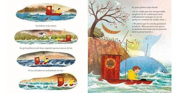 Un jeune pĂȘcheur vit seul sur une Ăźle perdue. Il passe son temps Ă pĂȘcher des montagnes de poissons, mais personne n’est lĂ pour en profiter avec lui. Quand un jour une baleine passe le voir, il est heureux de pouvoir enfin partager un bon repas. Mais il se rend compte que les poissons ont disparu. Un rĂ©cit poĂ©tique pour sensibiliser les enfants Ă la protection de l’environnement.