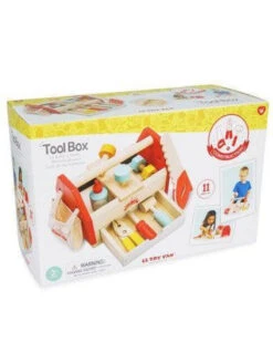 La boîte à outils en bois Le Toy Van ravira tous les petits bricolos avec ces 11 accessoires qui se rangent facilement grâce aux contours des outils imprimés dans le tiroir.