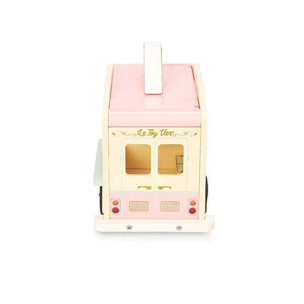 Ce superbe camion aux couleurs douces rose et beige est parfait pour les petits dès 3 ans, qui y glissent les personnages de leur choix (compatible Playmobil, Sylvanian et autres mini compagnons de jeu) pour inventer de belles histoires gourmandes. Le toit se soulève pour afficher la carte des glaces disponibles.