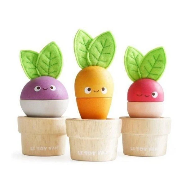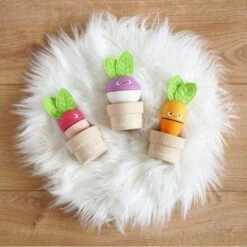 Ce coffret comprend 9 pièces interchangeables Ă empiler pour construire un radis, un navet et une carotte aux bouilles drĂ´les et attendrissantes. Le cadeau parfait pour l’Ă©veil des bĂ©bĂ©s.