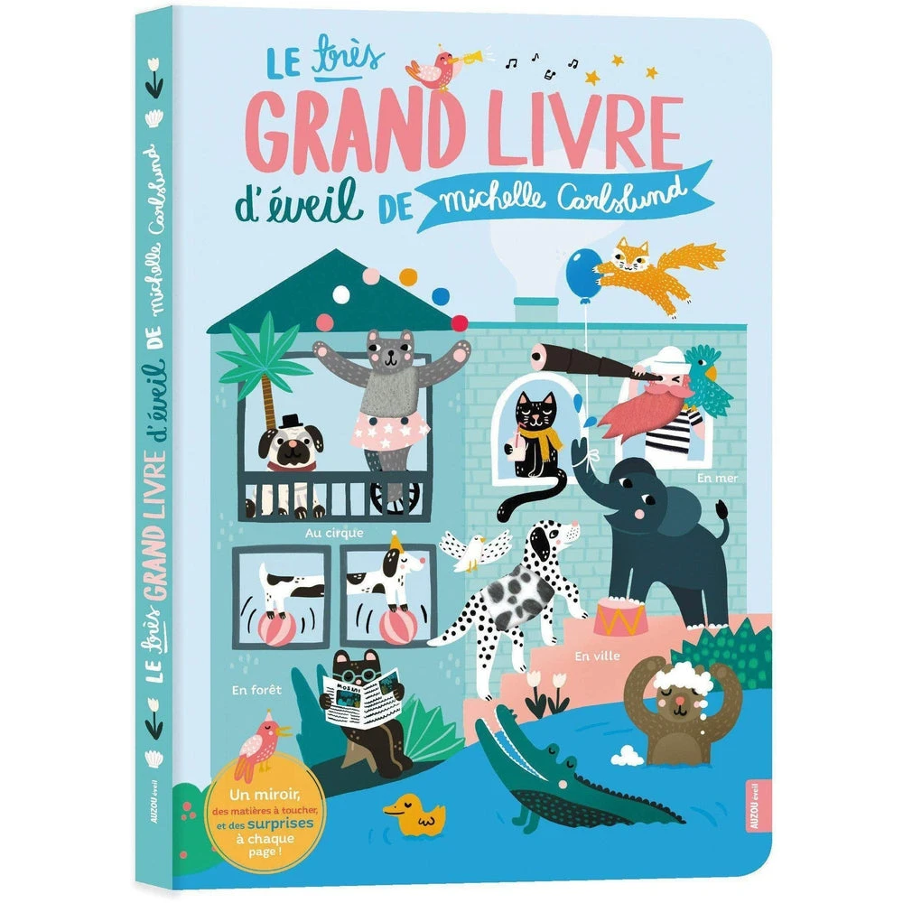 Découvrez les univers magnifiquement bien illustrés de Michelle Carlslund et de nombreuses matières à toucher dans ce livre grand format qui s’apparente, une fois ouvert, à un tapis d’éveil.