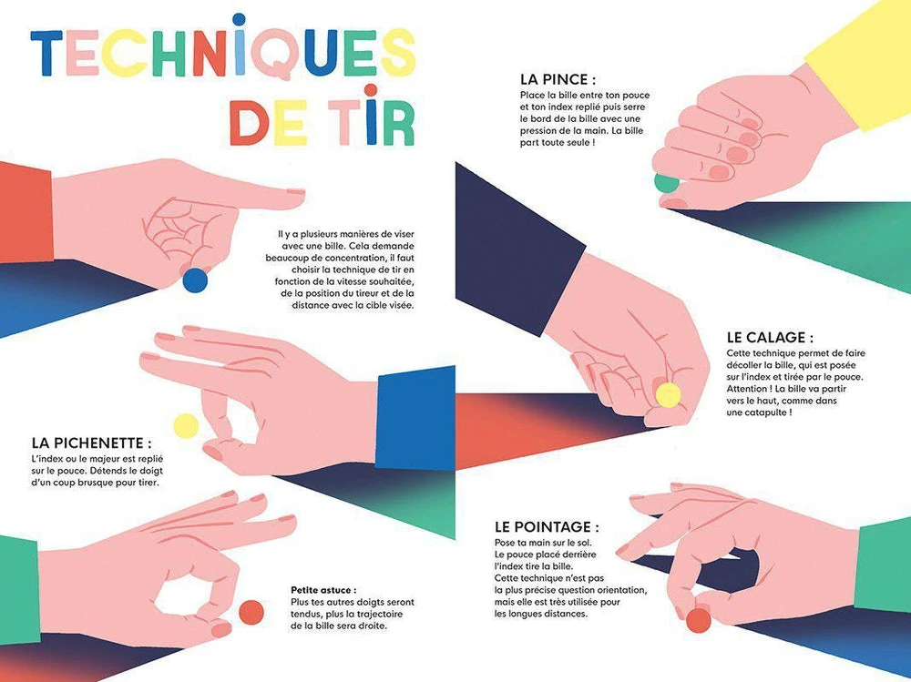 Il fallait y penser : tout un album, graphique et coloré, en l’honneur de l’un des jeux stars des cours de récréation. À la fois classique et intemporel (il existe depuis les Romains !), le jeu des billes est par excellence celui qui réunit les générations : les uns replongent avec nostalgie dans leurs souvenirs, les autres peuvent présenter avec fierté leur collection toute neuve, gagnée sous le préau ! Règle du jeu, origine, techniques de tirs, types de parties, circuits… le thème est riche. Il est ici présenté avec une belle vigueur graphique, dans une mise en page ludique des différentes collections, couleurs ou matières typiques du joli et joyeux monde des billes.
