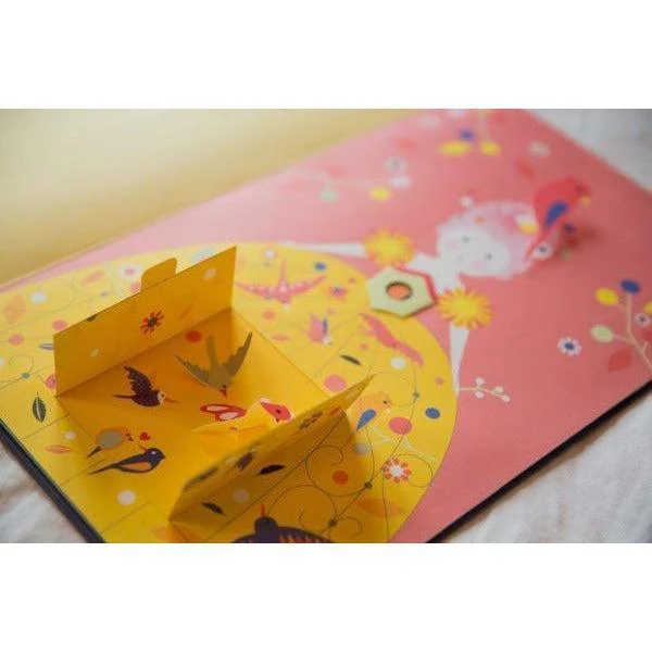 La magie d’un conte inĂ©dit qui a l’étoffe d’un classique, illustrĂ© par sept robes animĂ©es et pleines de surprises : flaps, tirettes, roues… Un livre animĂ© merveilleux.