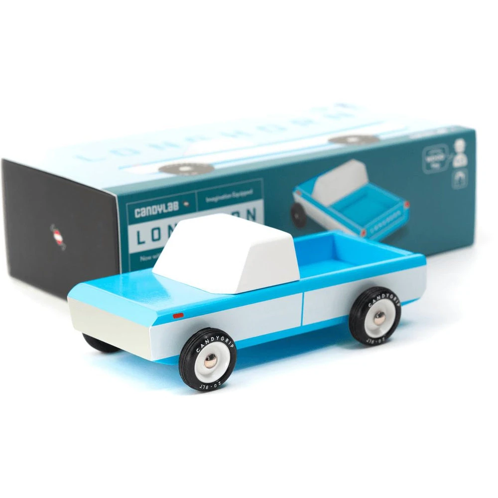 DĂ©couvrez le Pick-up Longhorn Bleu en bois de la marque Candylab.Â