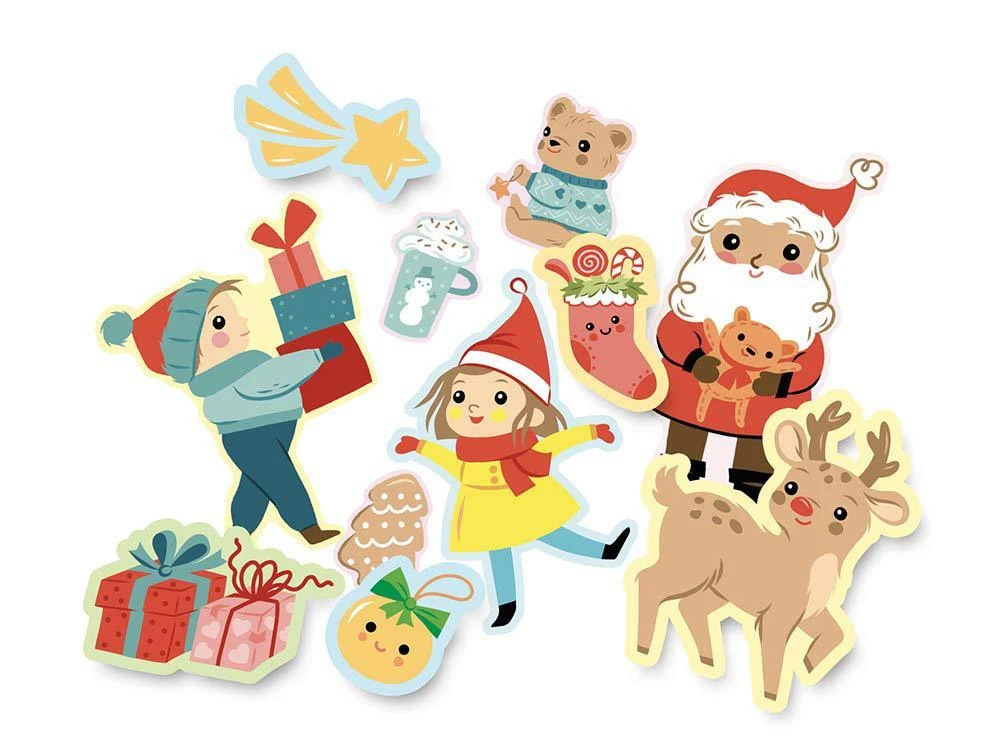 De jolies gommettes repositionnables sur le thème de NoĂ«l pour dĂ©corer ses cahiers, ses dessins, sa chambre: Père noĂ«l, cadeaux, sapins, jouets, bonhomme de pain d’Ă©pice, Ă©toiles…