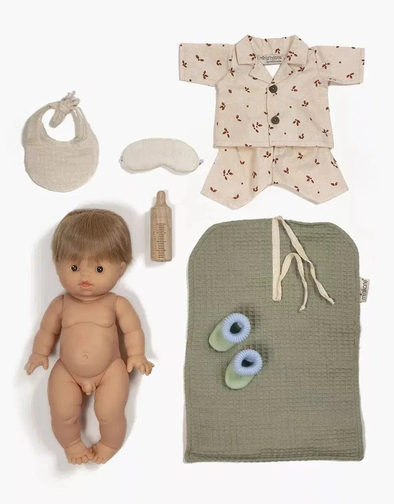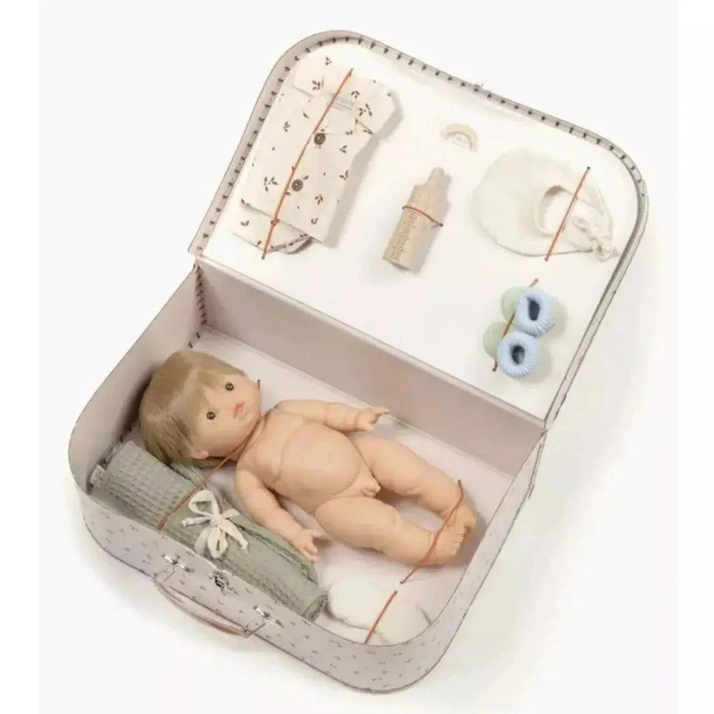 Craquez pour cette belle valise d’antan contenant une jolie poupée garçon à habiller et ses accessoires du quotidien de la marque Minikane.