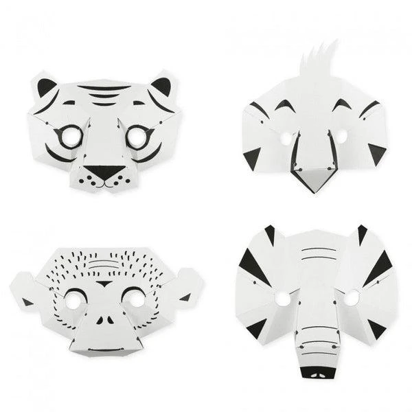 Une activité manuelle réjouissante ! 4 masques en papier à fabriquer en 3d et à colorier. Es-tu plutôt singe, perroquet, tigre ou éléphant ?