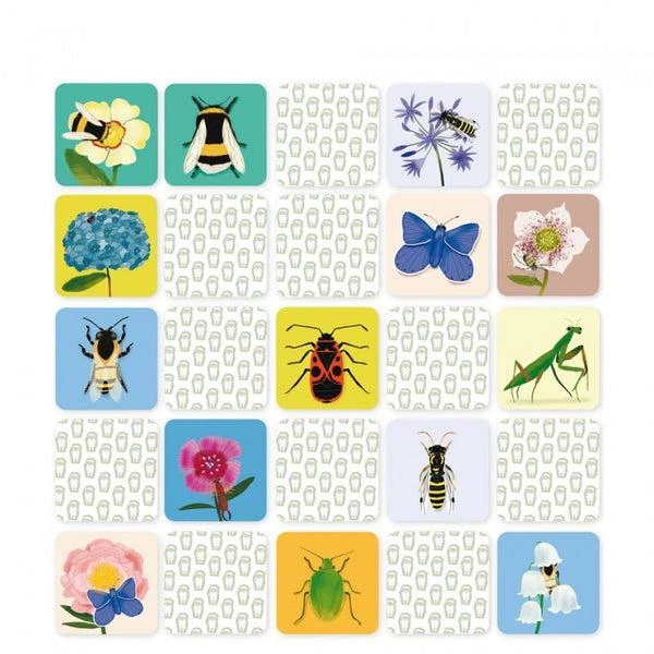 Après avoir dĂ©cortiquĂ© les 40 cartes du jeu, l’enfant peut s’amuser Ă rassembler les bonnes paires et Ă dĂ©couvrir des insectes et des fleurs.