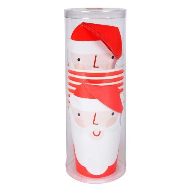 Pack de 8 verres. Gobelets en carton blanc avec étui au motif Père Noël.