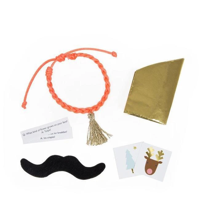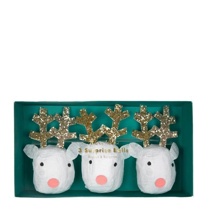 Embellissez vos tables de fêtes à Noël avec ces charmantes et généreuses boules surprise en forme de rennes. Déballez et découvrez dans chacune: 2 tattoos temporaires, 1 blague, 1 chapeau, 1 bracelet et 1 moustache!