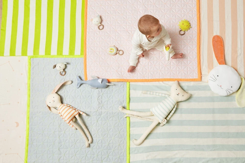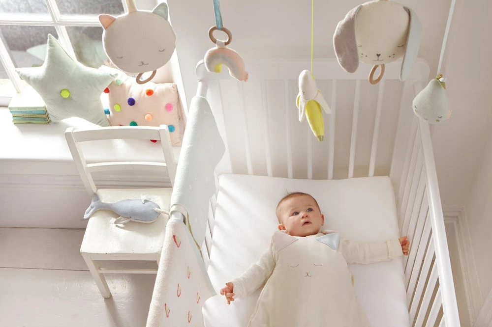 Cet adorable hochet en coton bio avec tête de chat et anneau en bois est un cadeau parfait pour une naissance et pour accompagner un joli livre.