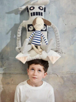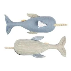 Cet adorable petit narval se nomme Milo, il est entièrement en tricot de coton biologique tout doux. Les bĂ©bĂ©s adorent jouer avec son pompon blanc, sa corne cousue de fil dorĂ© et son ventre scintillant. C’est aussi le fidèle compagnon des plus grands moussaillons qui aiment son look original et l’emmènent dans toutes leurs aventures.