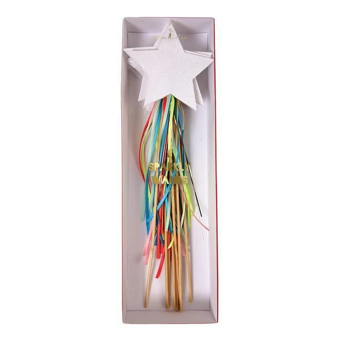 Vos petit(e)s invité(e)s vont adorer se transformer en princesses magiques ou en fées avec ces incroyables baguettes brillantes et rubans arc-en-ciel !