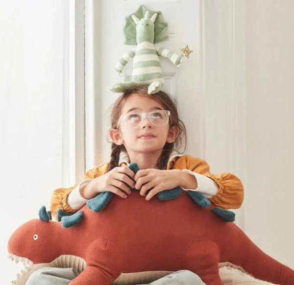 Cet adorable petit dinosaure se nomme Max, il est entièrement en tricot de coton biologique tout doux. Les bébés adorent jouer avec lui et le câliner. C’est aussi le fidèle compagnon des les plus grands qui l’emmènent dans toutes leurs aventures !